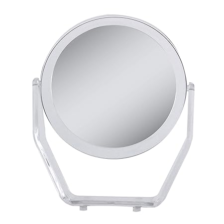 Amazon Com Lemonade Ideas Dual Sided Round Stand Up Vanity Mirror Transparent Silver One Side Of The Mirror Has 1 X Magnification And The Other Side Has 2x Magnification Best For