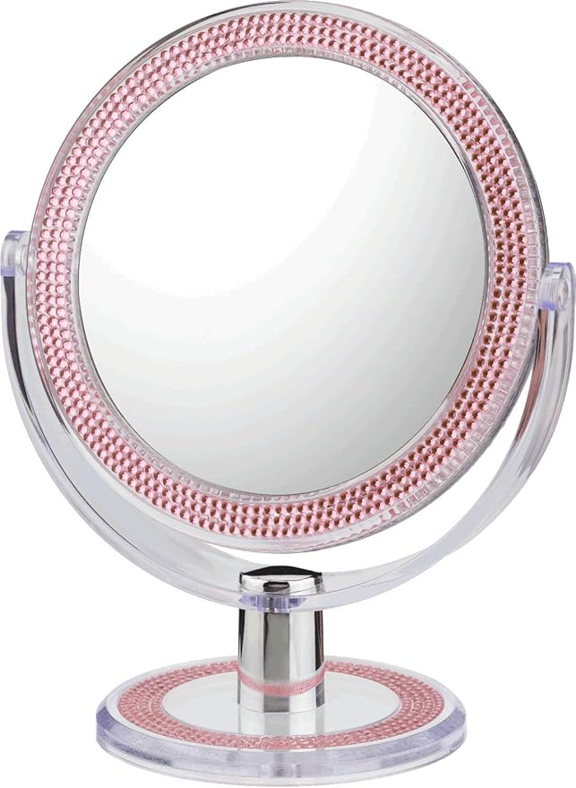 First Impressions Double Sided Free Standing Magnified Makeup Bathroom Mirror Pink Bling Furniture Decor Amazon Com